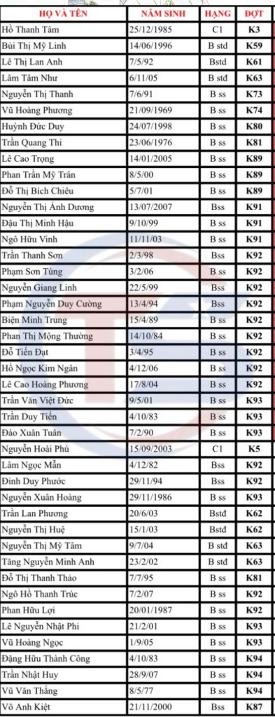 • Kiểm tra kỹ họ và tên – ngày sinh – hạng thi – đợt thi